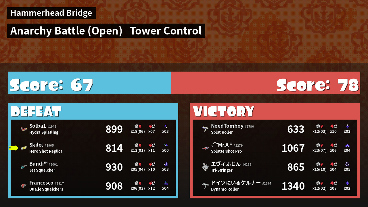 | Mode | Tower Control - Anarchy Battle (Open) | ||