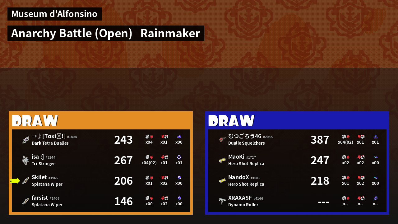 | Mode | Rainmaker - Anarchy Battle (Open) | ||