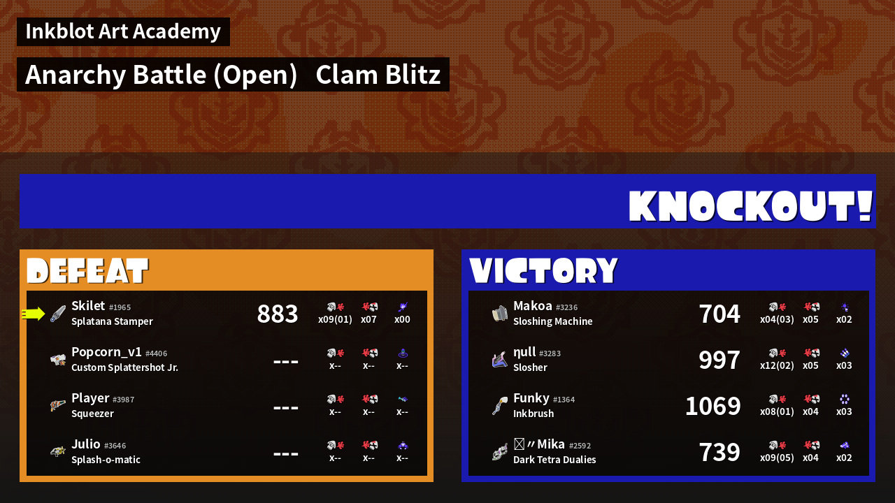 | Mode | Clam Blitz - Anarchy Battle (Open) | ||