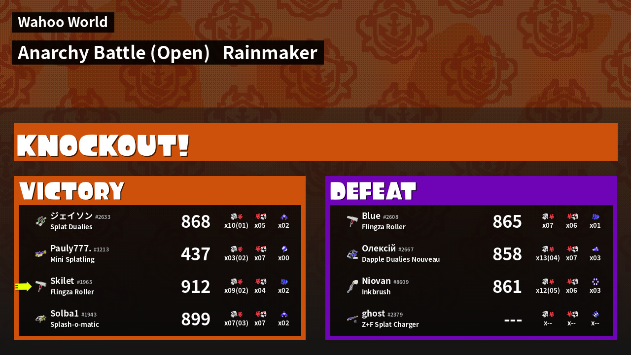 | Mode | Rainmaker - Anarchy Battle (Open) | ||||