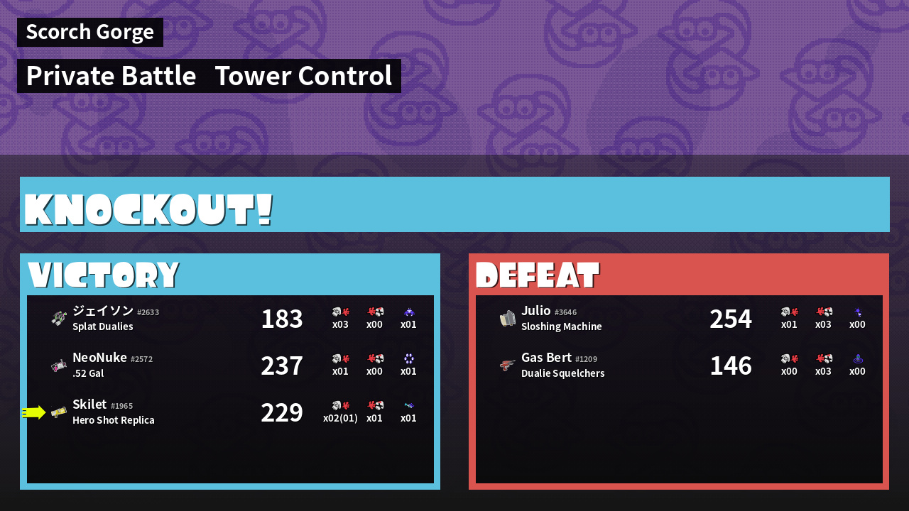Kills / Deaths | 1 + 1 / 1 = Kill Ratio: 1.00 | ||