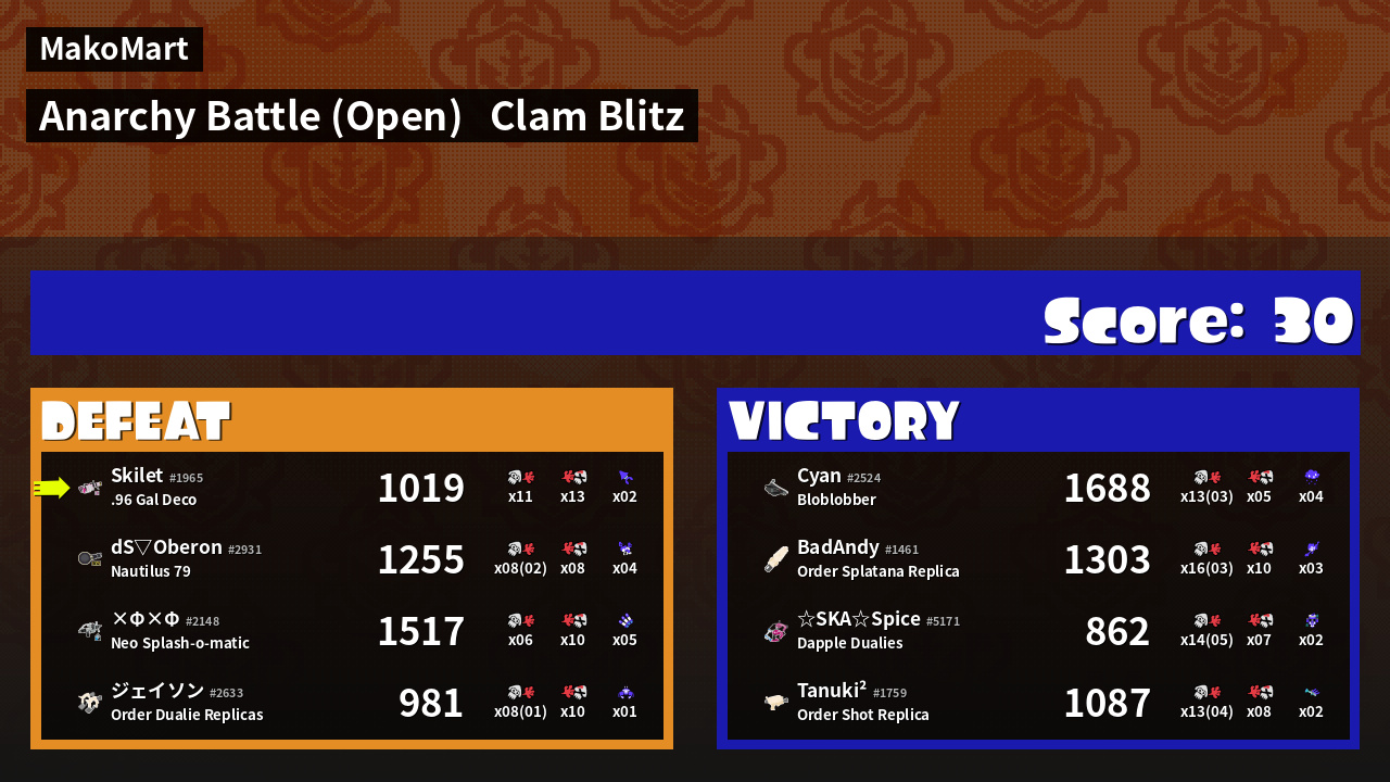 | Mode | Clam Blitz - Anarchy Battle (Open) | ||