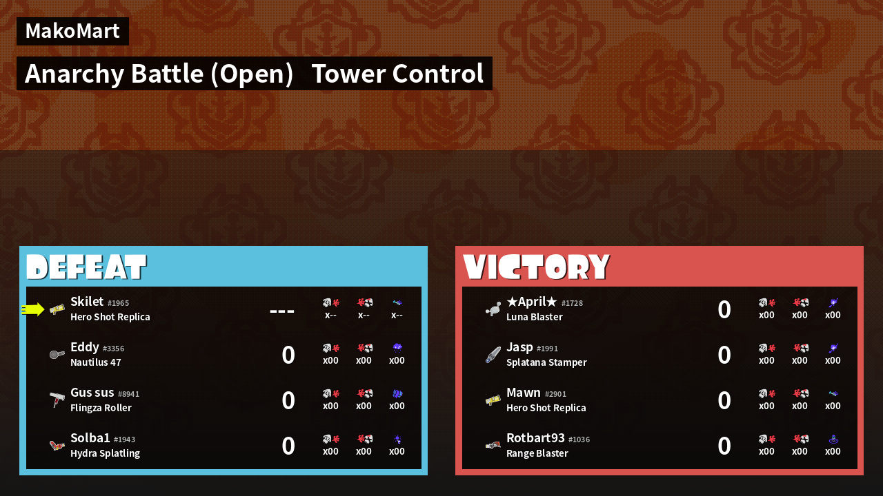 | Mode | Tower Control - Anarchy Battle (Open) | ||