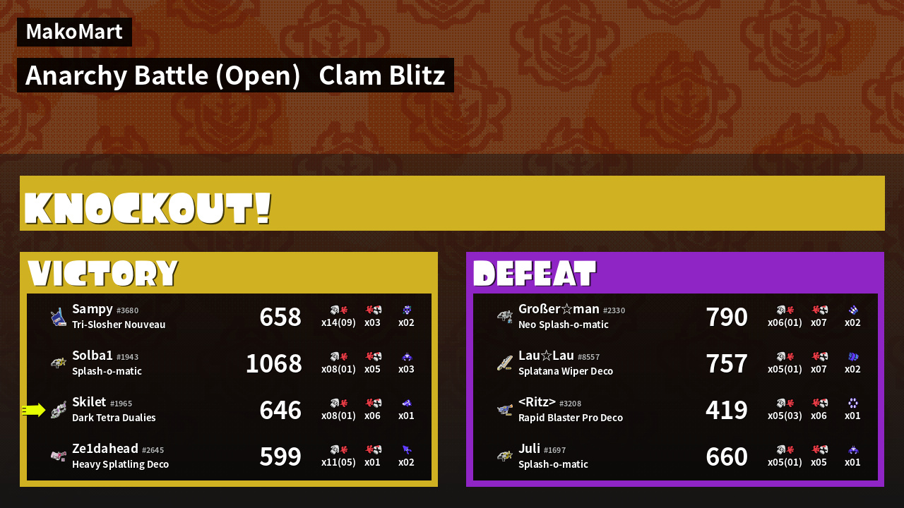 | Mode | Clam Blitz - Anarchy Battle (Open) | ||