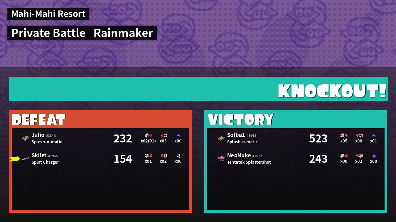 Kills / Deaths | 1 + 0 / 2 < Kill Ratio: 0.50 | ||