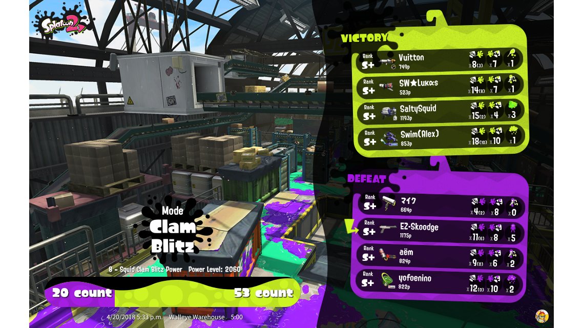 | Name | Weapon | Level | Rank | Inked | k+a/sp | k/d |