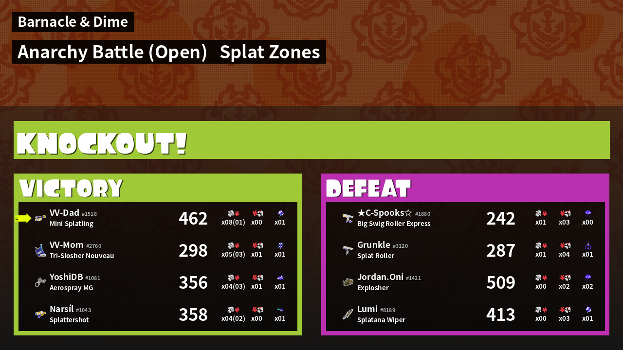 | Mode | Splat Zones - Anarchy Battle (Open) | ||