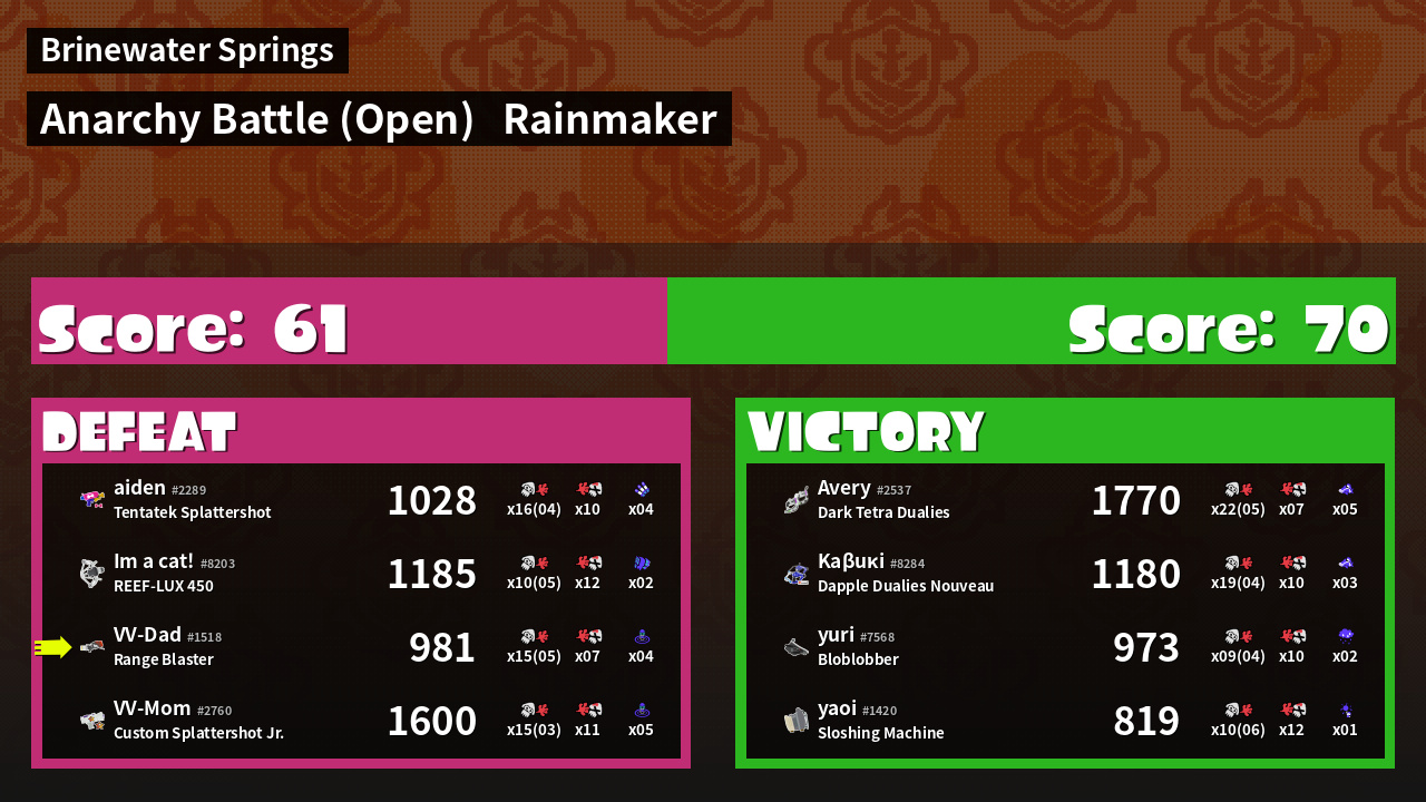 | Mode | Rainmaker - Anarchy Battle (Open) | ||
