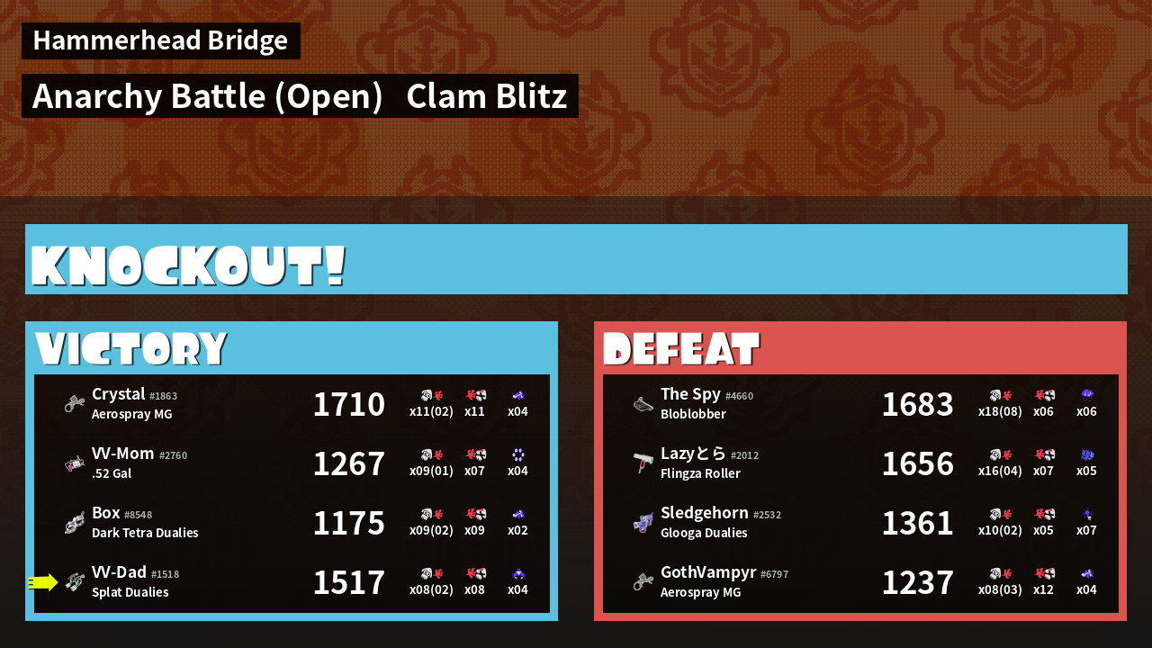 | Mode | Clam Blitz - Anarchy Battle (Open) | ||