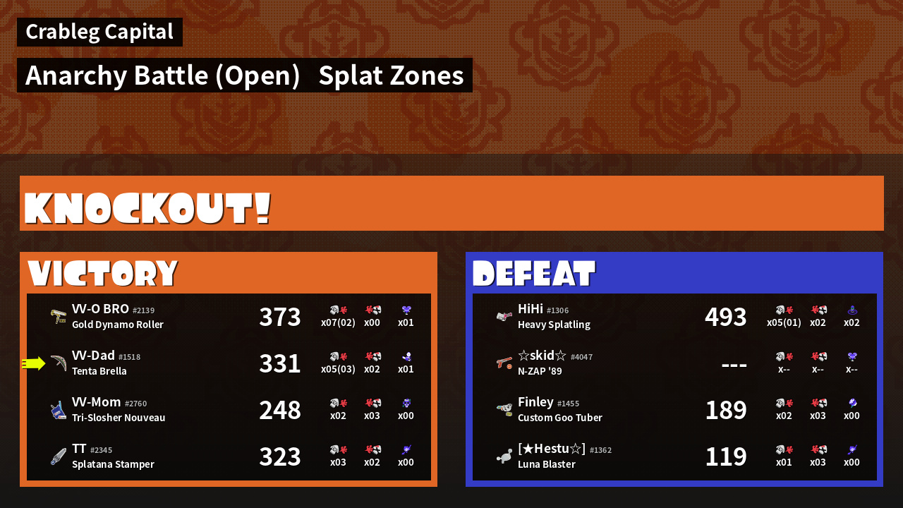 | Mode | Splat Zones - Anarchy Battle (Open) | ||