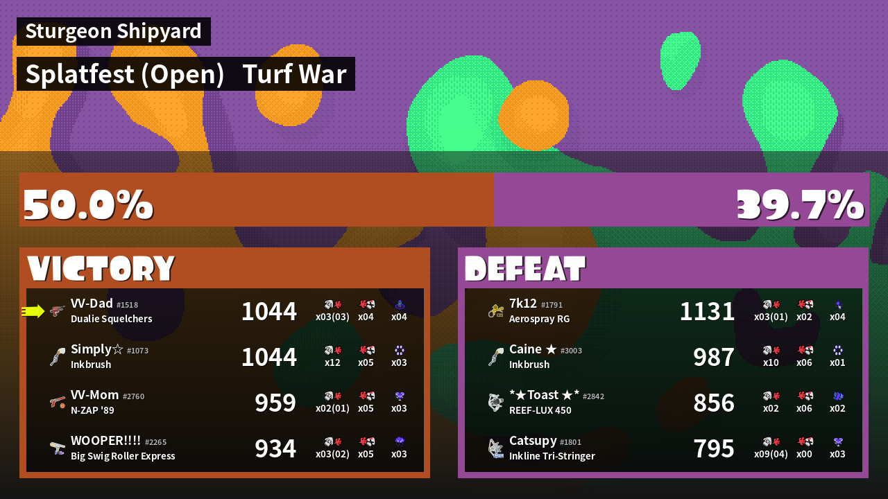| Medals | #1 Turf Inker #1 Splat Assister #1 Wave Breaker User | ||