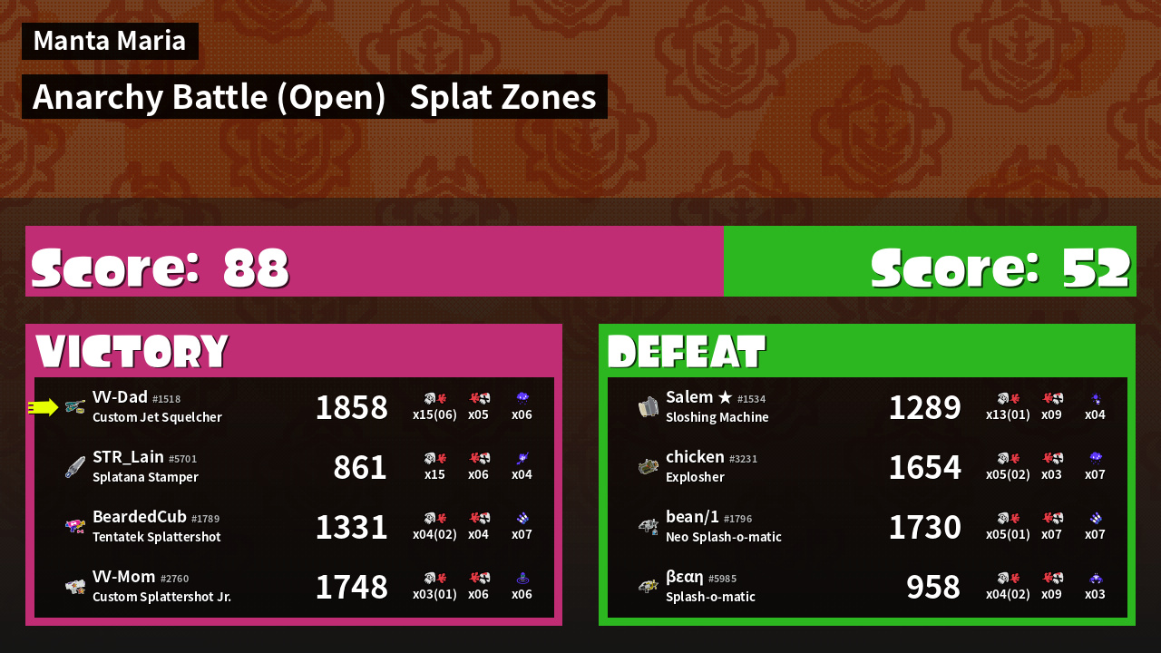 | Mode | Splat Zones - Anarchy Battle (Open) | ||