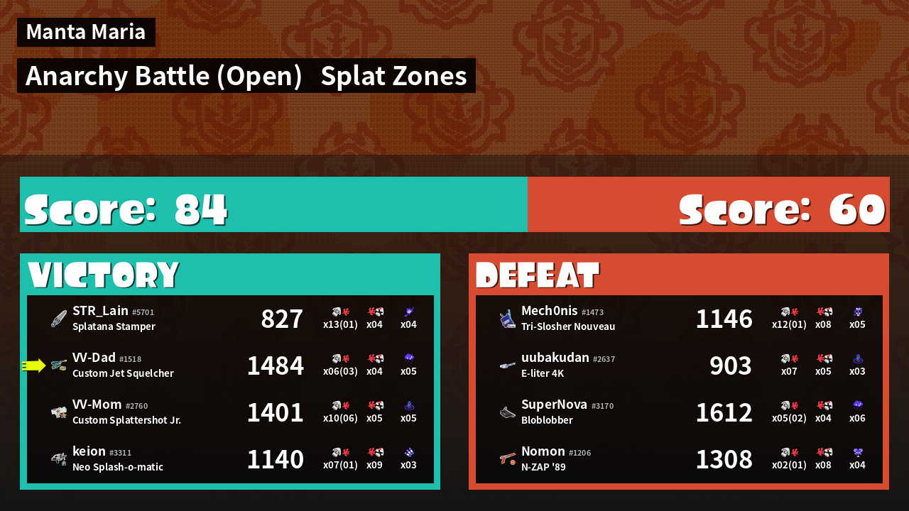 | Mode | Splat Zones - Anarchy Battle (Open) | ||