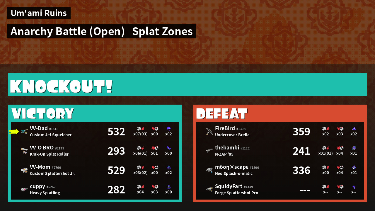 | Mode | Splat Zones - Anarchy Battle (Open) | ||