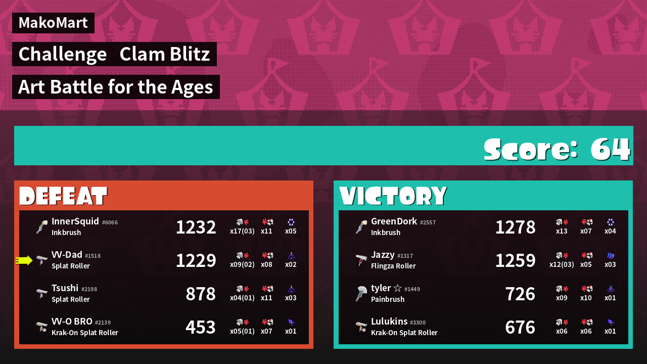 | Weapon | Splat Roller ( Curling Bomb / Big Bubbler) | ||