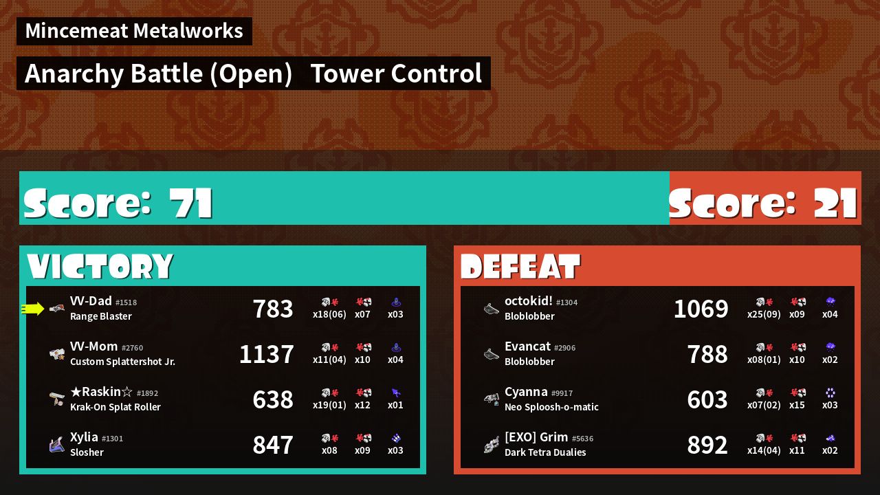 | Medals | Record-Score Setter #1 Popular Target #1 Splat Assister | ||