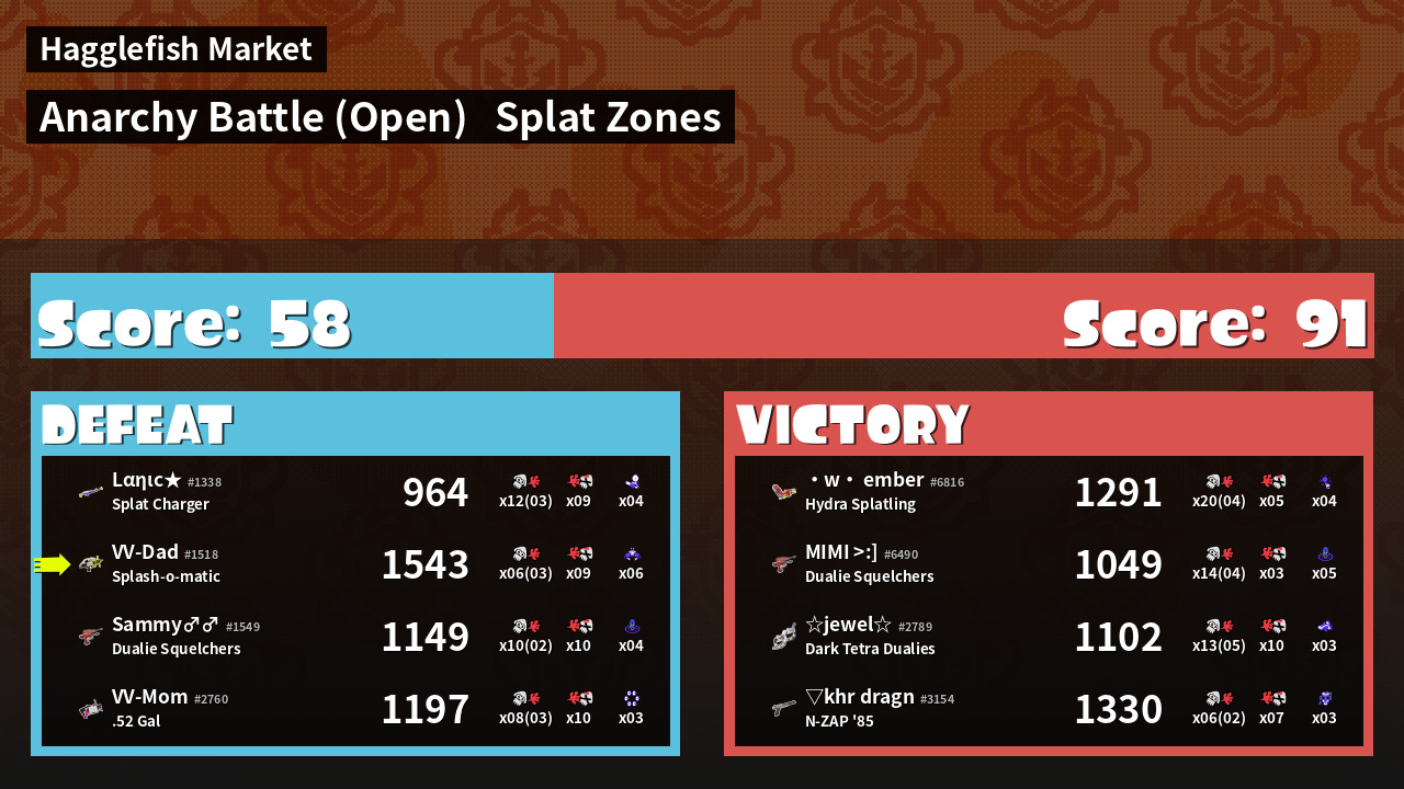 | Mode | Splat Zones - Anarchy Battle (Open) | ||