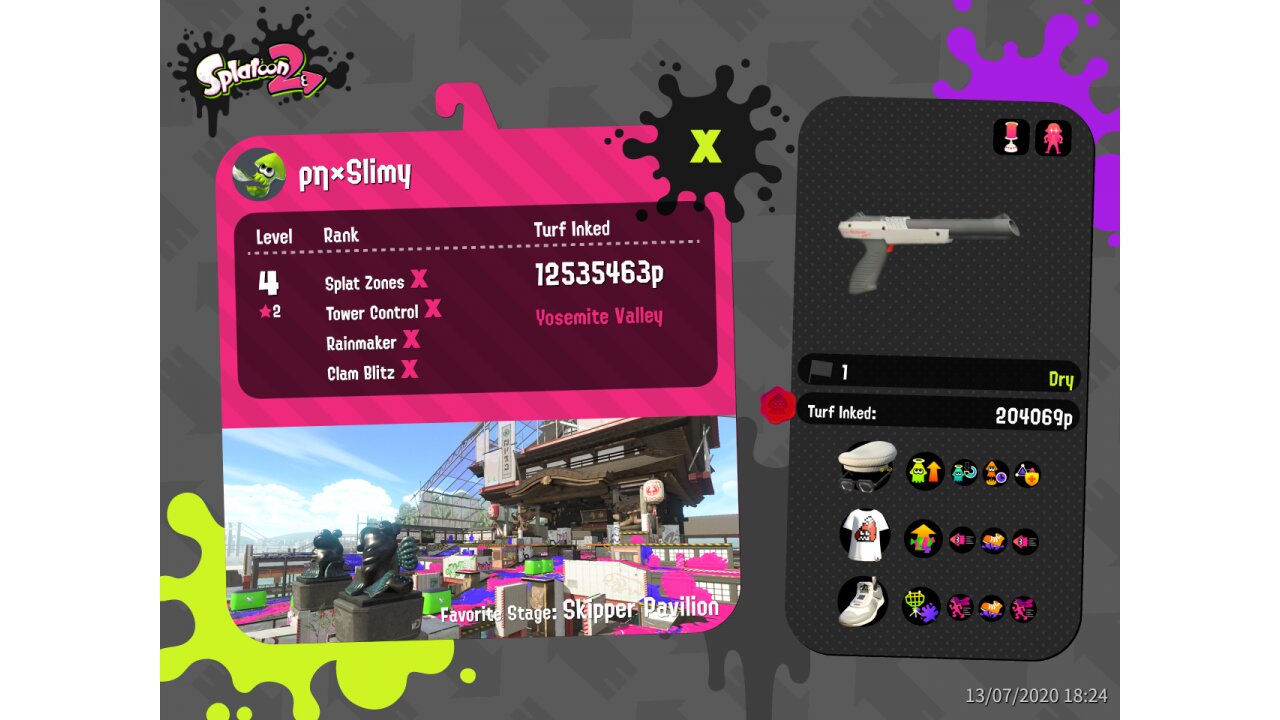 | Name | Weapon | Level | Rank | Inked | k+a/sp | k/d |