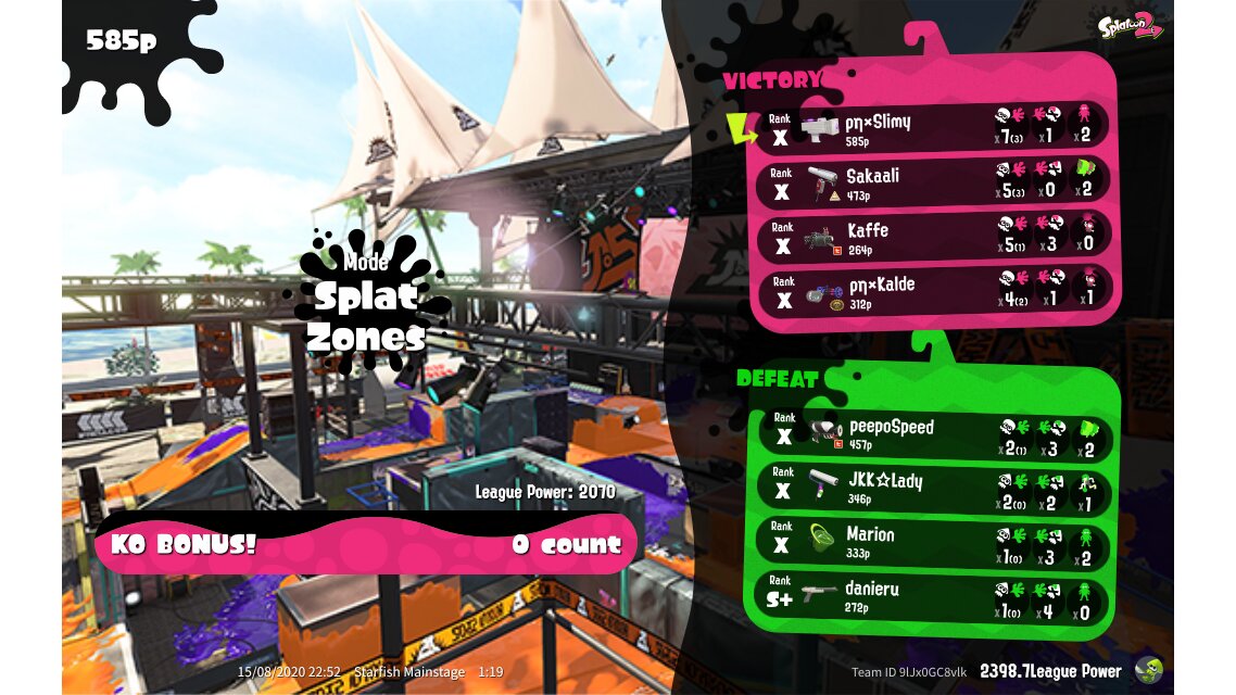 | Mode | Splat Zones - League Battle (Quad) | ||||||||||||||||||||||||||||||||||||||||