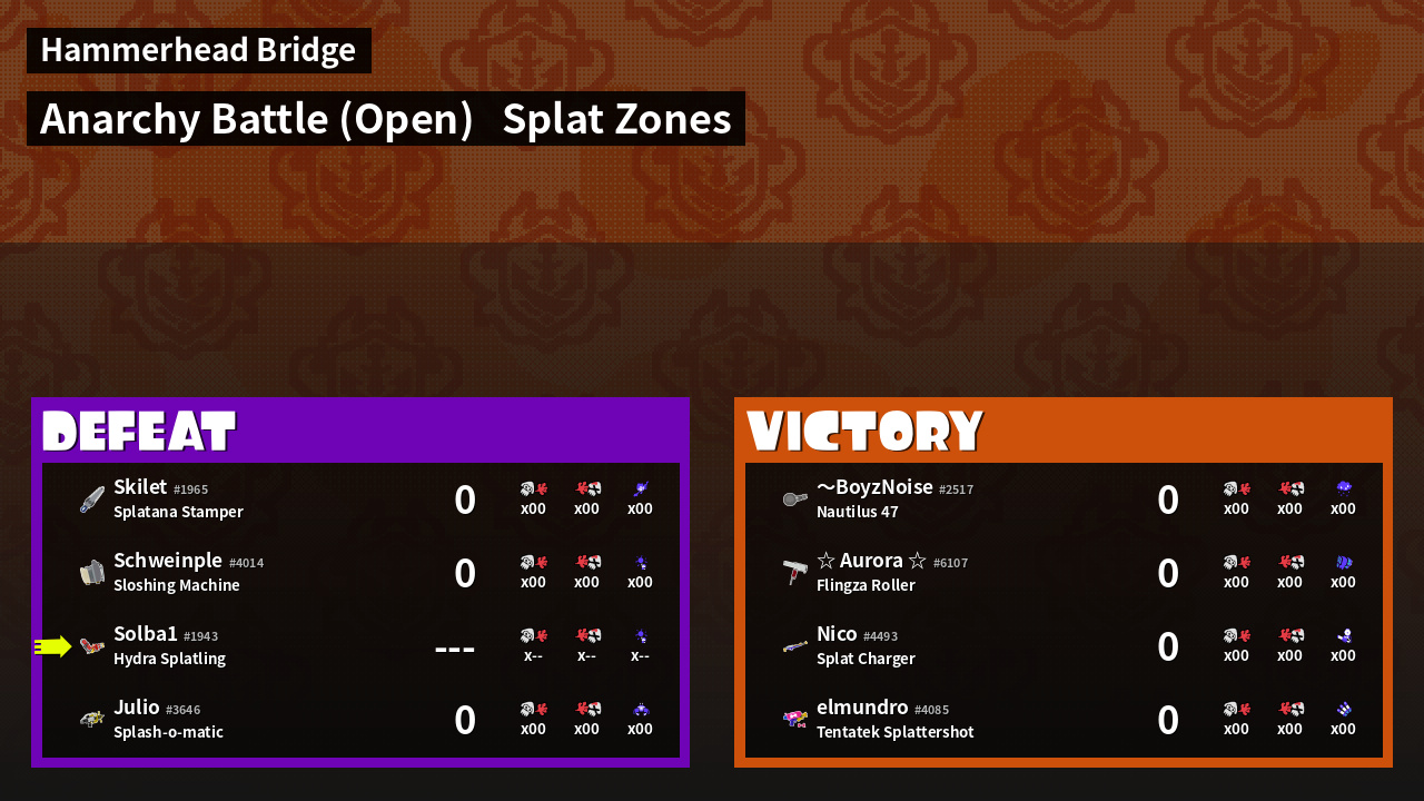 | Mode | Splat Zones - Anarchy Battle (Open) | ||