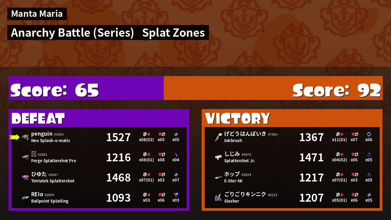 | Medals | #1 Overall Splatter #1 Splat Zone Inker #1 Splat Zone Guard | ||