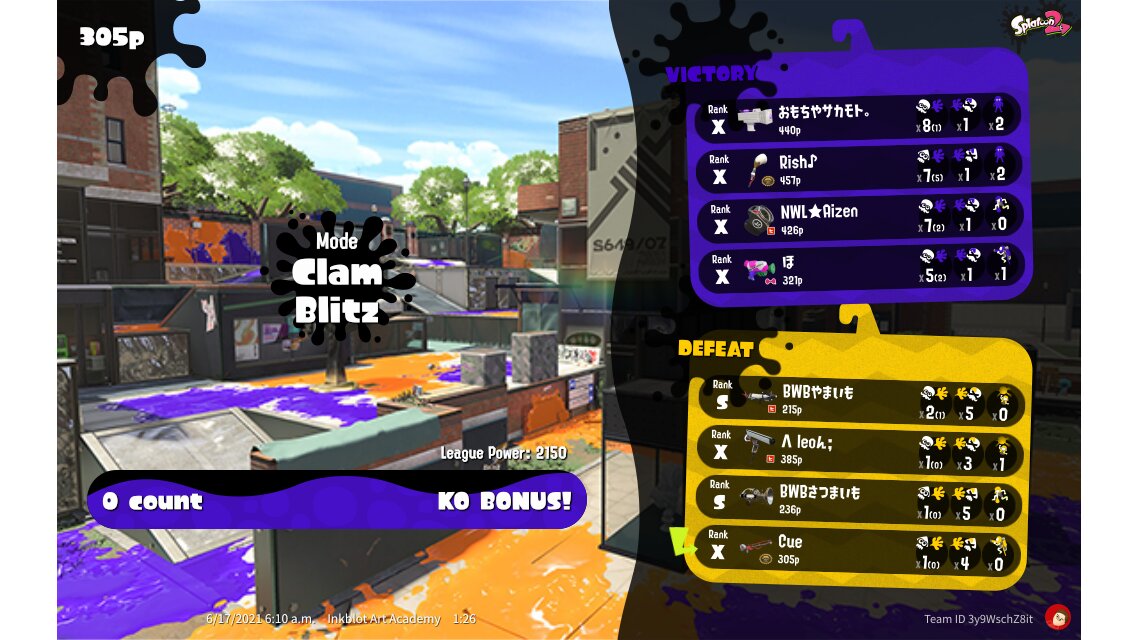 | Mode | Clam Blitz - League Battle (Twin) | |||||||||||||||||||||||||||||||||||||