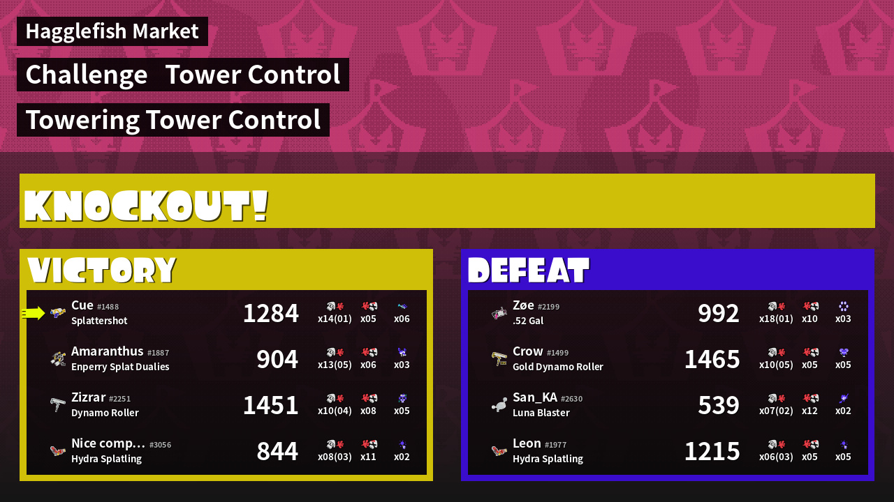 | Medals | #1 Overall Splatter #1 Enemy Splatter #1 Damage Taker | ||