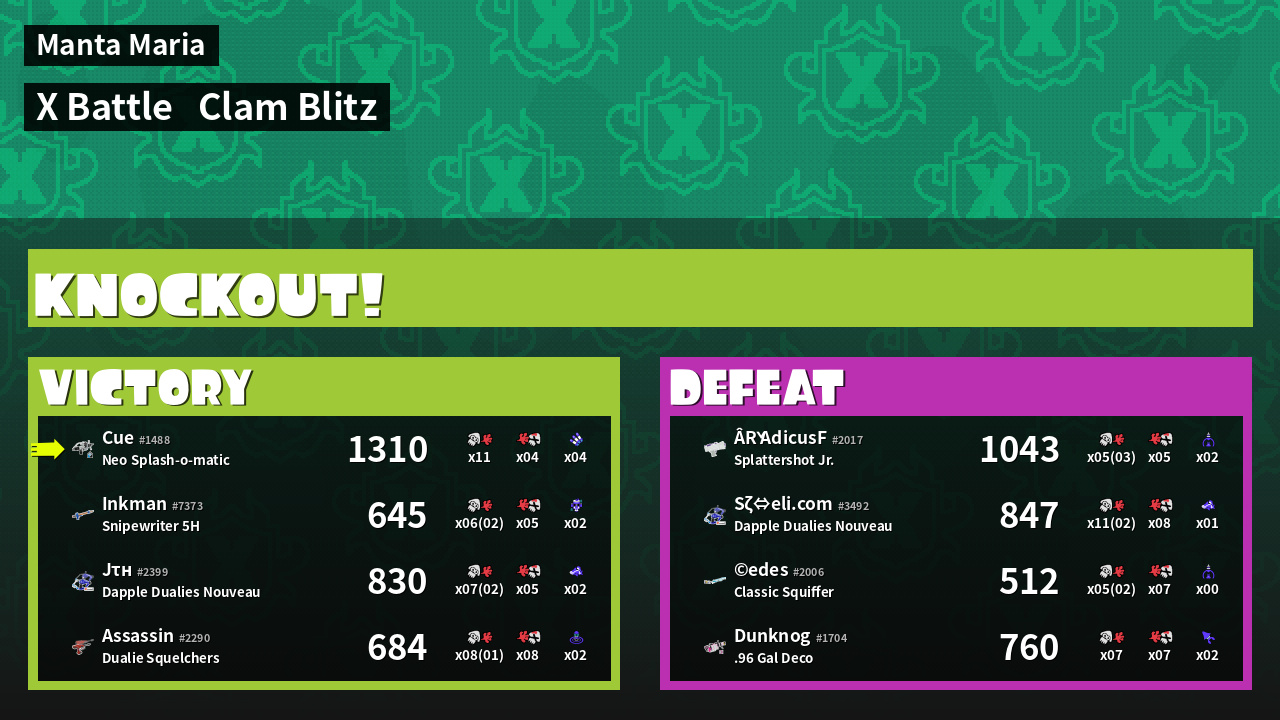 | Mode | Clam Blitz - X Battle | ||