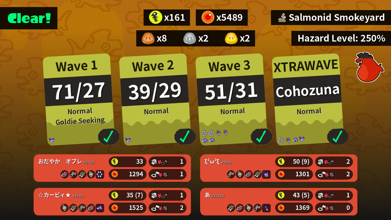 | Boss Salmonid | 23 | 11 | 21 | 19 |