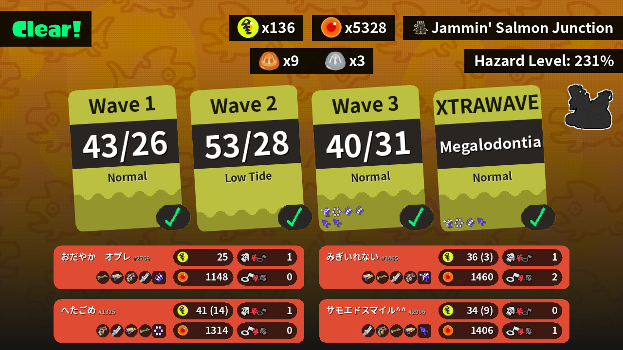 | Boss Salmonid | 27 | 22 | 18 | 17 |