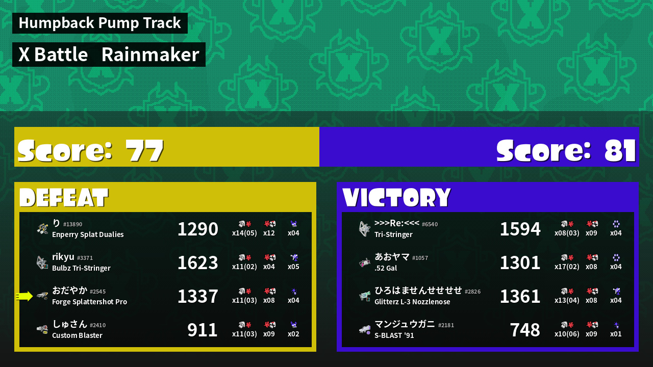 | Weapon | Forge Splattershot Pro ( Suction Bomb / Booyah Bomb) |