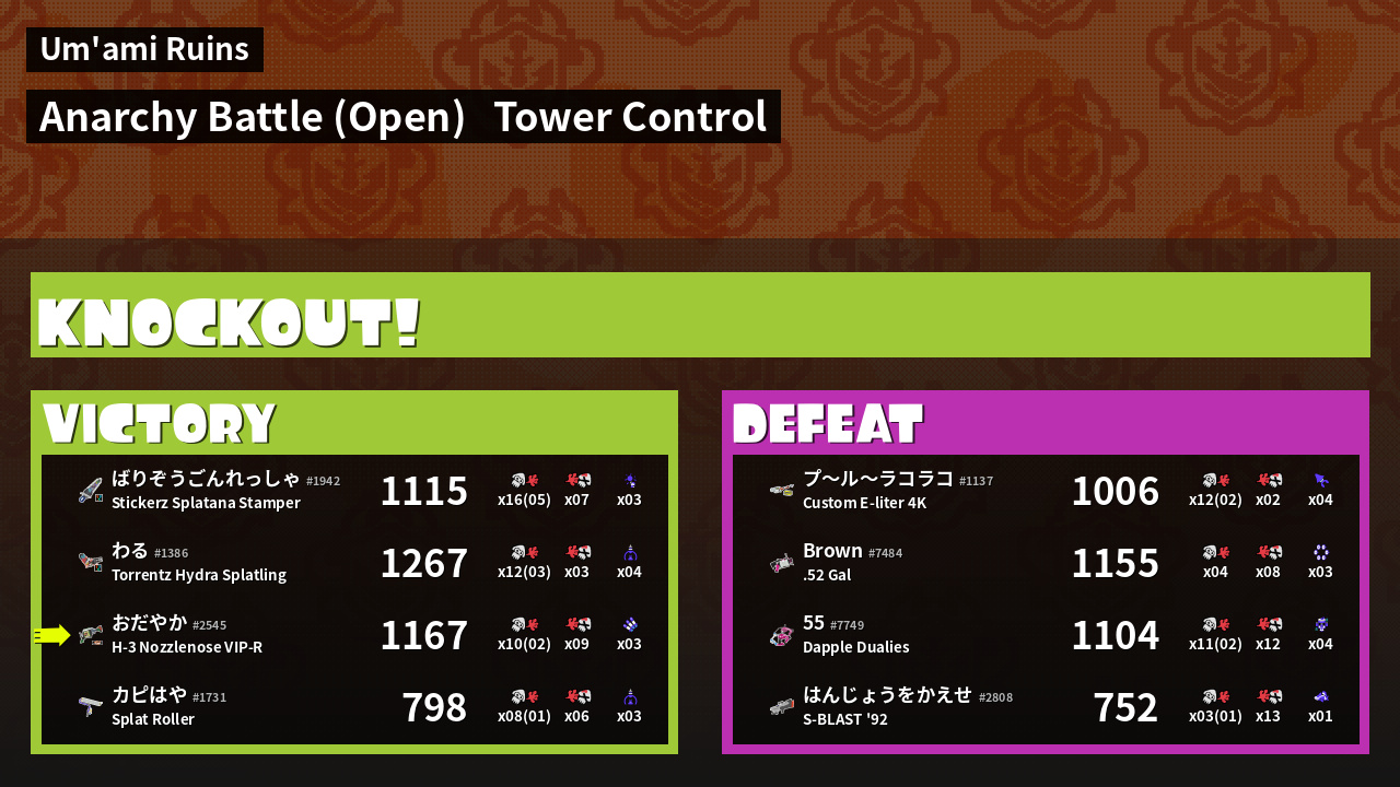 | Mode | Tower Control - Anarchy Battle (Open) |