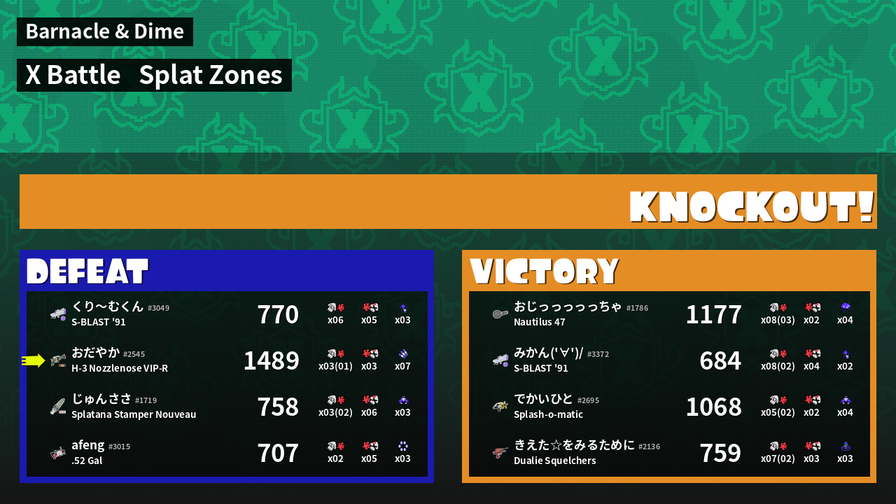 | Weapon | H-3 Nozzlenose VIP-R ( Suction Bomb / Triple Inkstrike) |