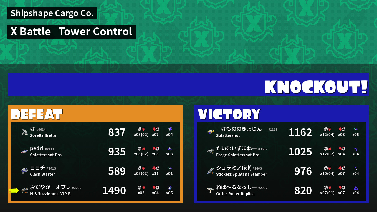 | Weapon | H-3 Nozzlenose VIP-R ( Suction Bomb / Triple Inkstrike) |