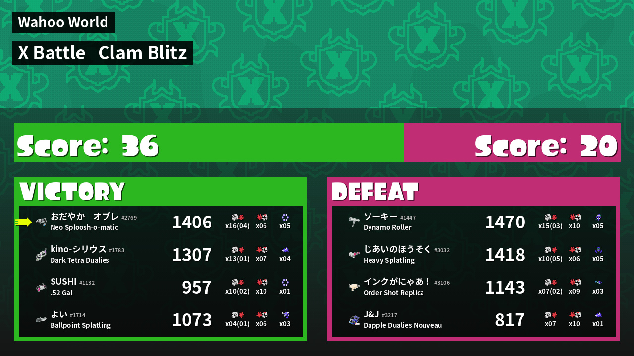 | Medals | #1 Overall Splatter #1 Score Booster #1 Clam Carrier |
