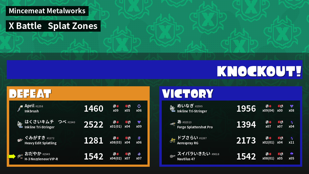 | Medals | #1 Triple Inkstrike User #2 Splat Zone Inker #2 Turf Inker |