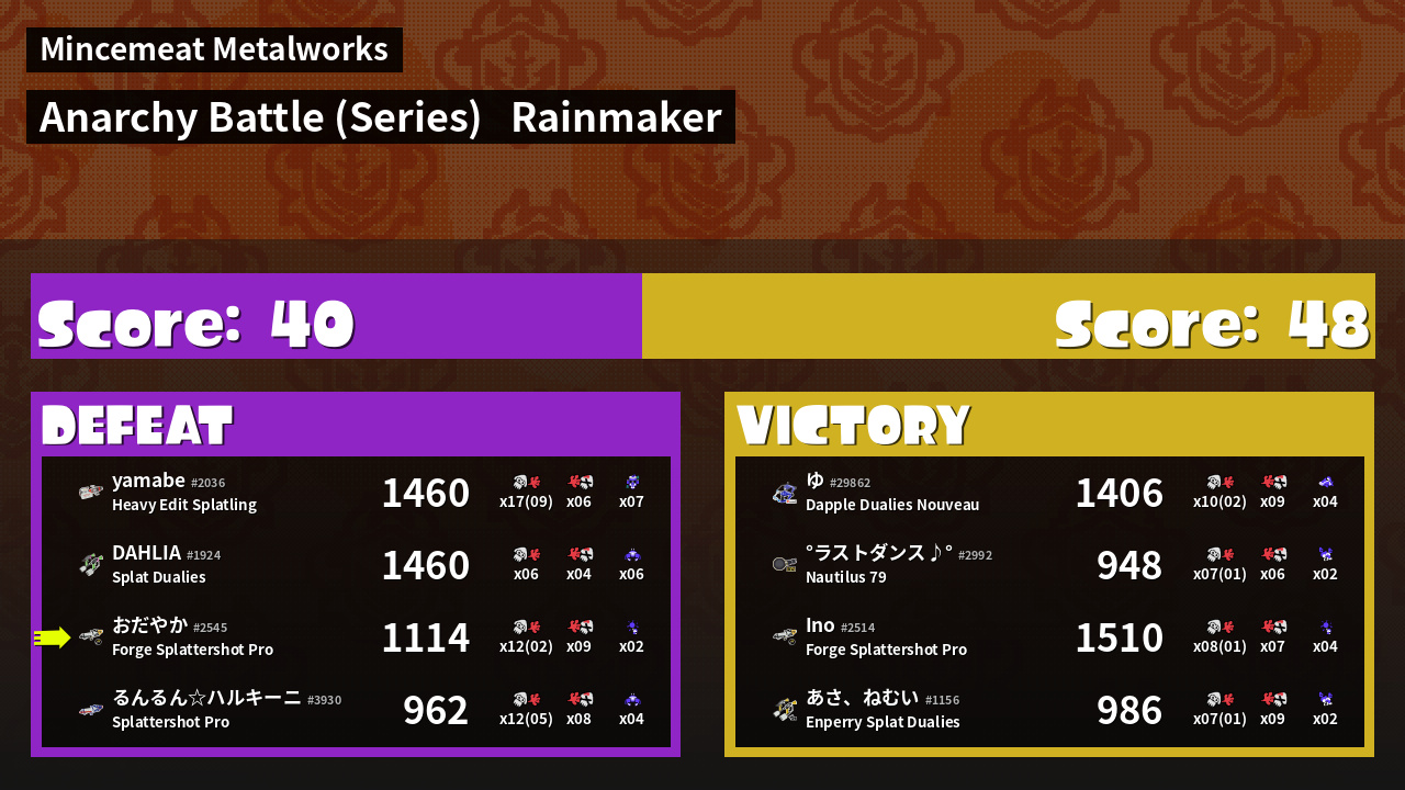 | Mode | Rainmaker - Anarchy Battle (Series) |