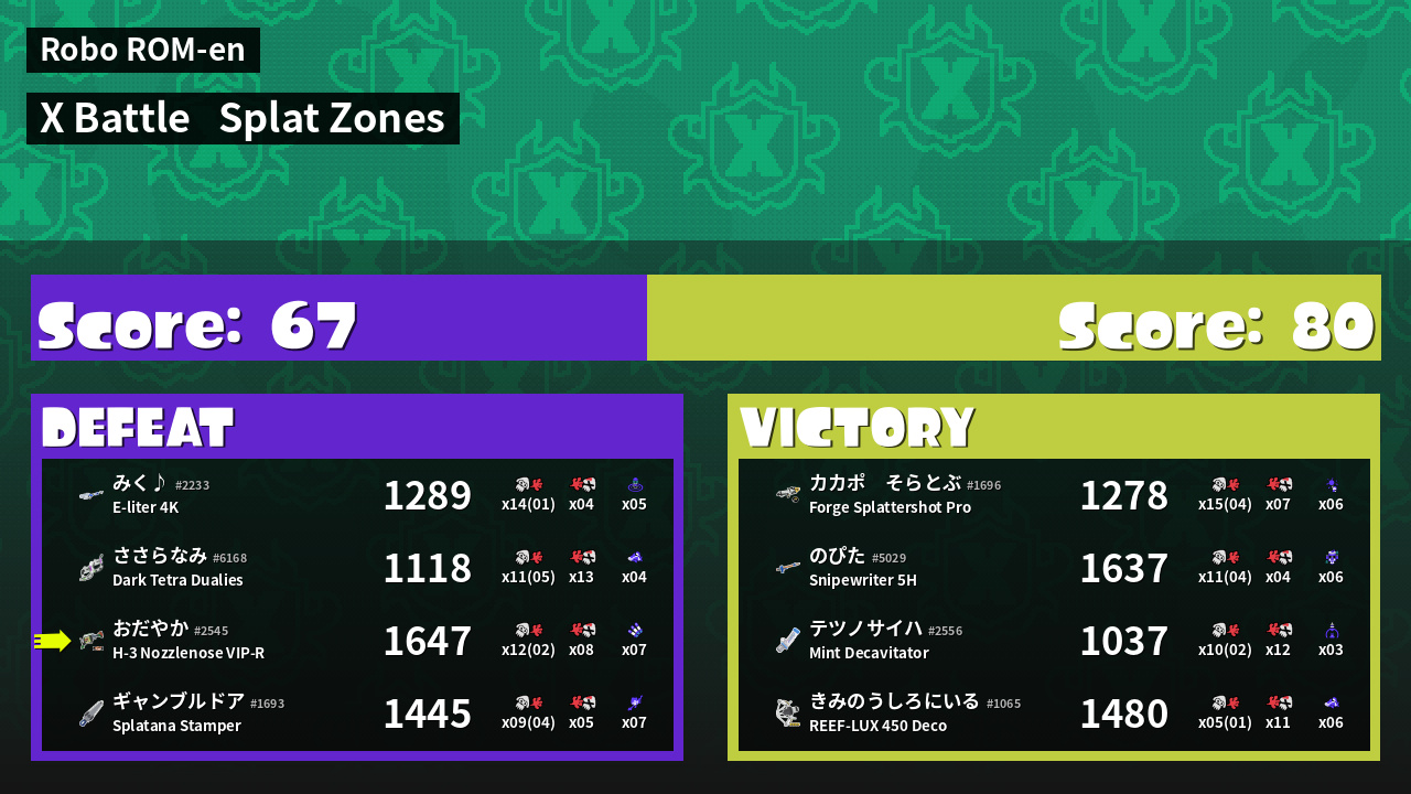 | Mode | Splat Zones - X Battle |