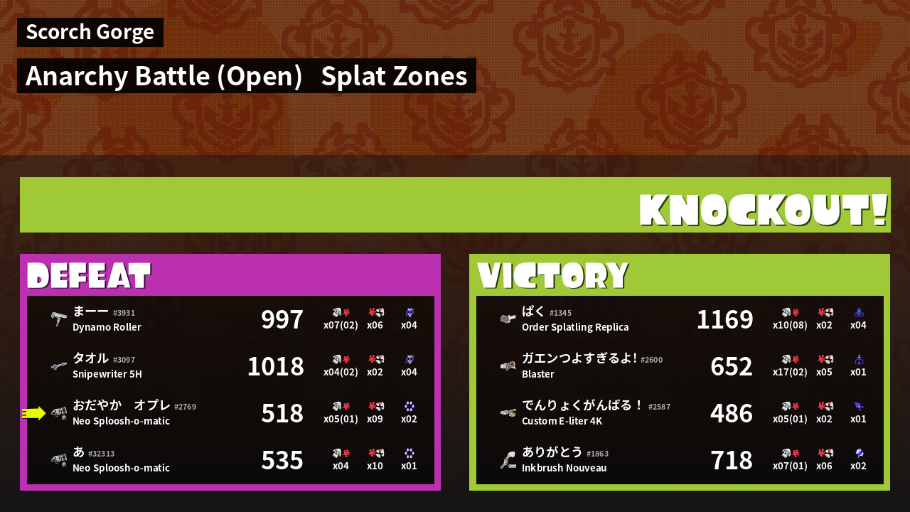 | Mode | Splat Zones - Anarchy Battle (Open) |