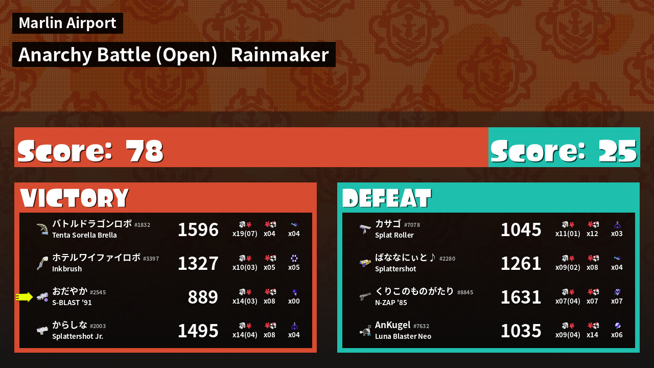 | Mode | Rainmaker - Anarchy Battle (Open) |