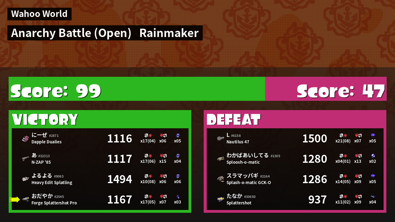 | Mode | Rainmaker - Anarchy Battle (Open) |