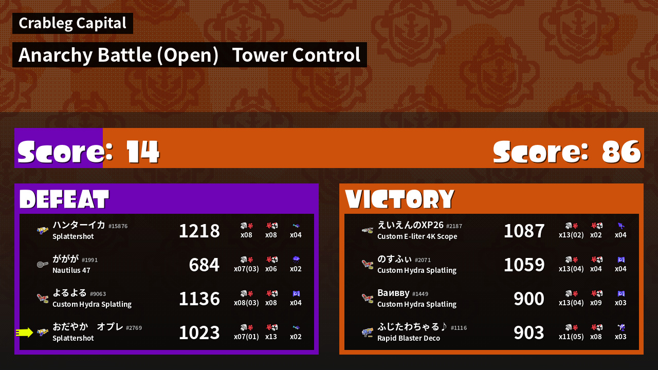| Mode | Tower Control - Anarchy Battle (Open) | ||