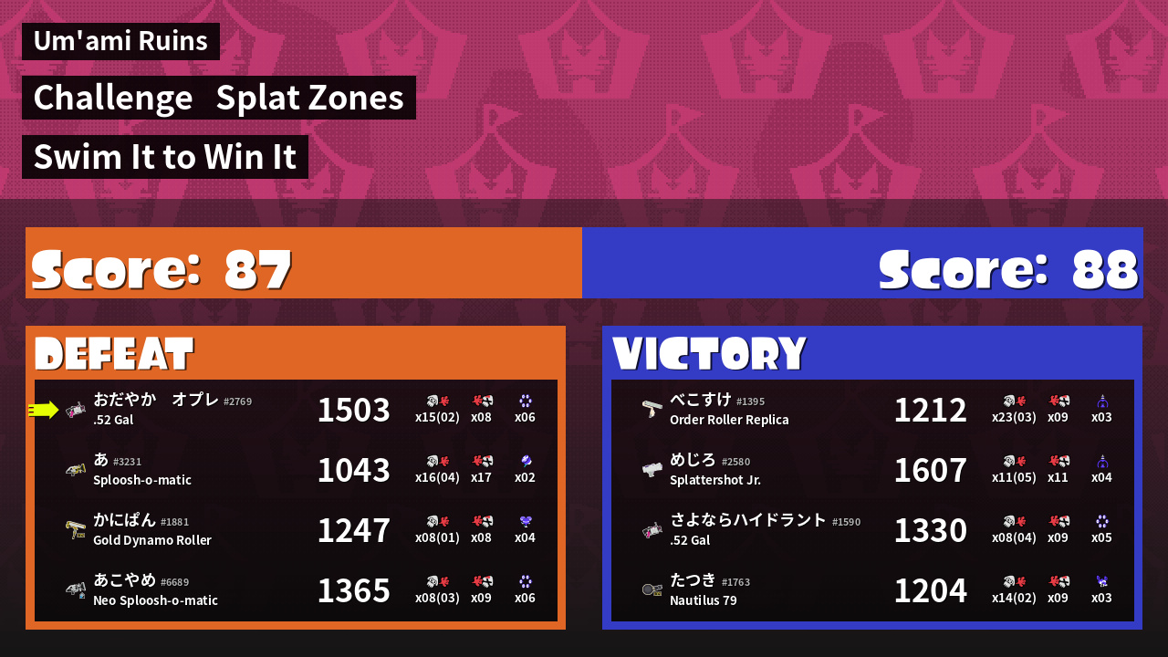 | Medals | #1 Splat Zone Guard #1 Turf Inker #1 Popular Target | ||