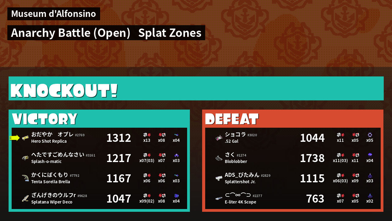 | Mode | Splat Zones - Anarchy Battle (Open) | ||