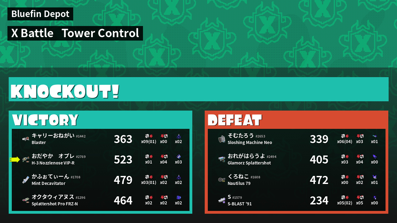 | Weapon | H-3 Nozzlenose VIP-R ( Suction Bomb / Triple Inkstrike) |