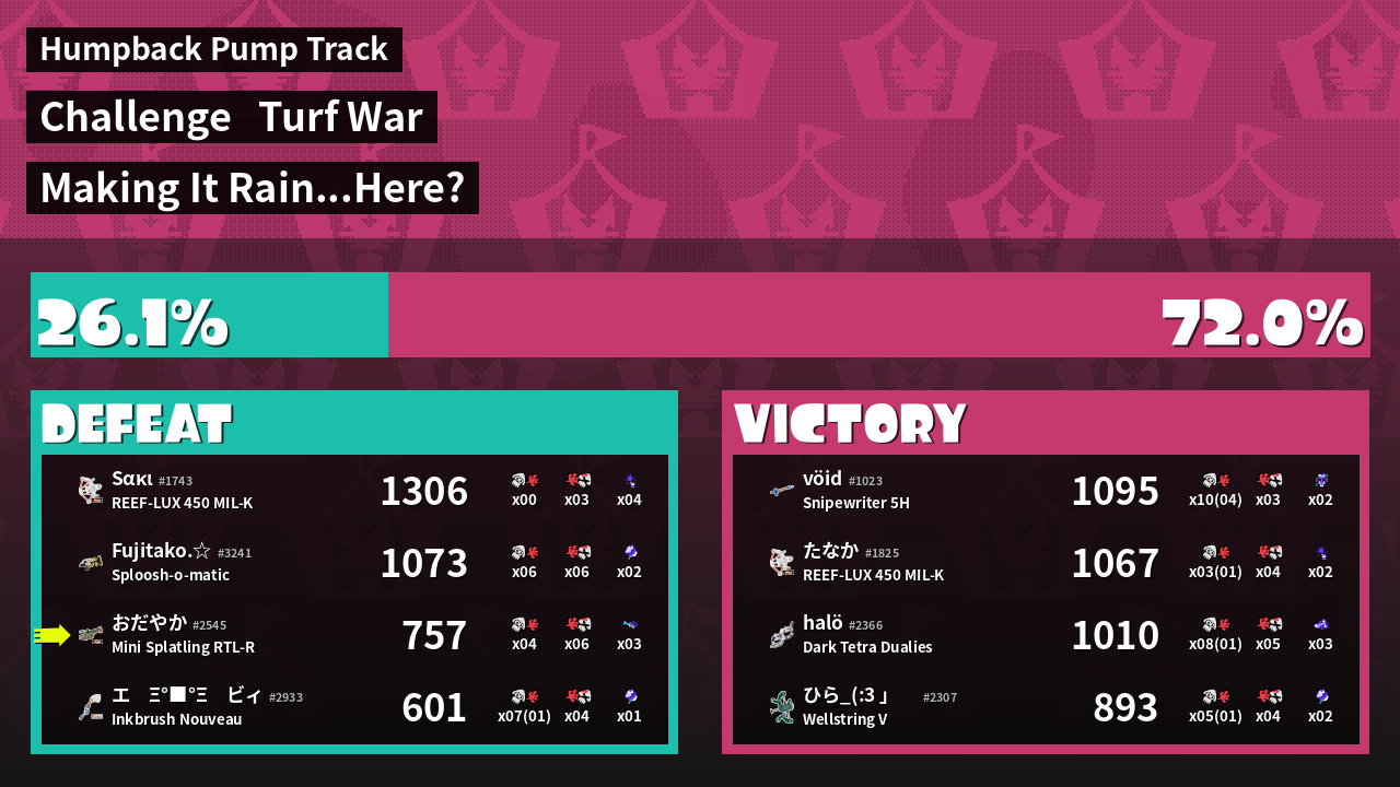 | Mode | Turf War - Challenge |
