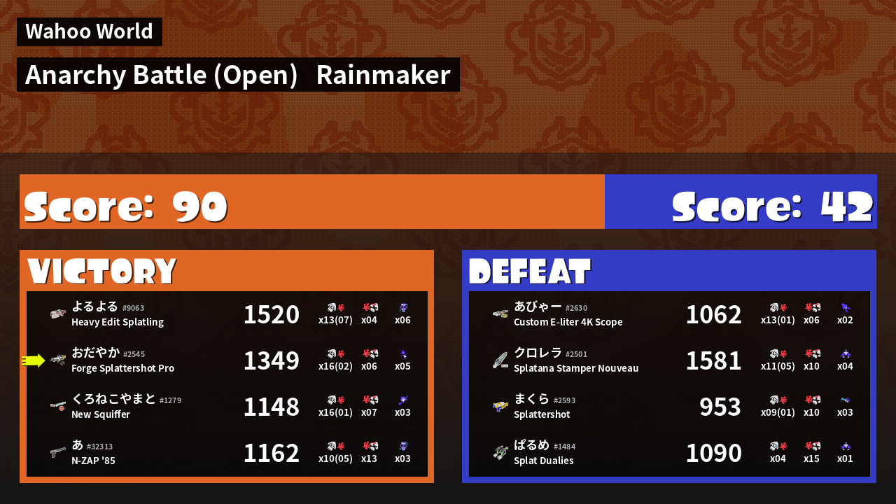 | Mode | Rainmaker - Anarchy Battle (Open) |