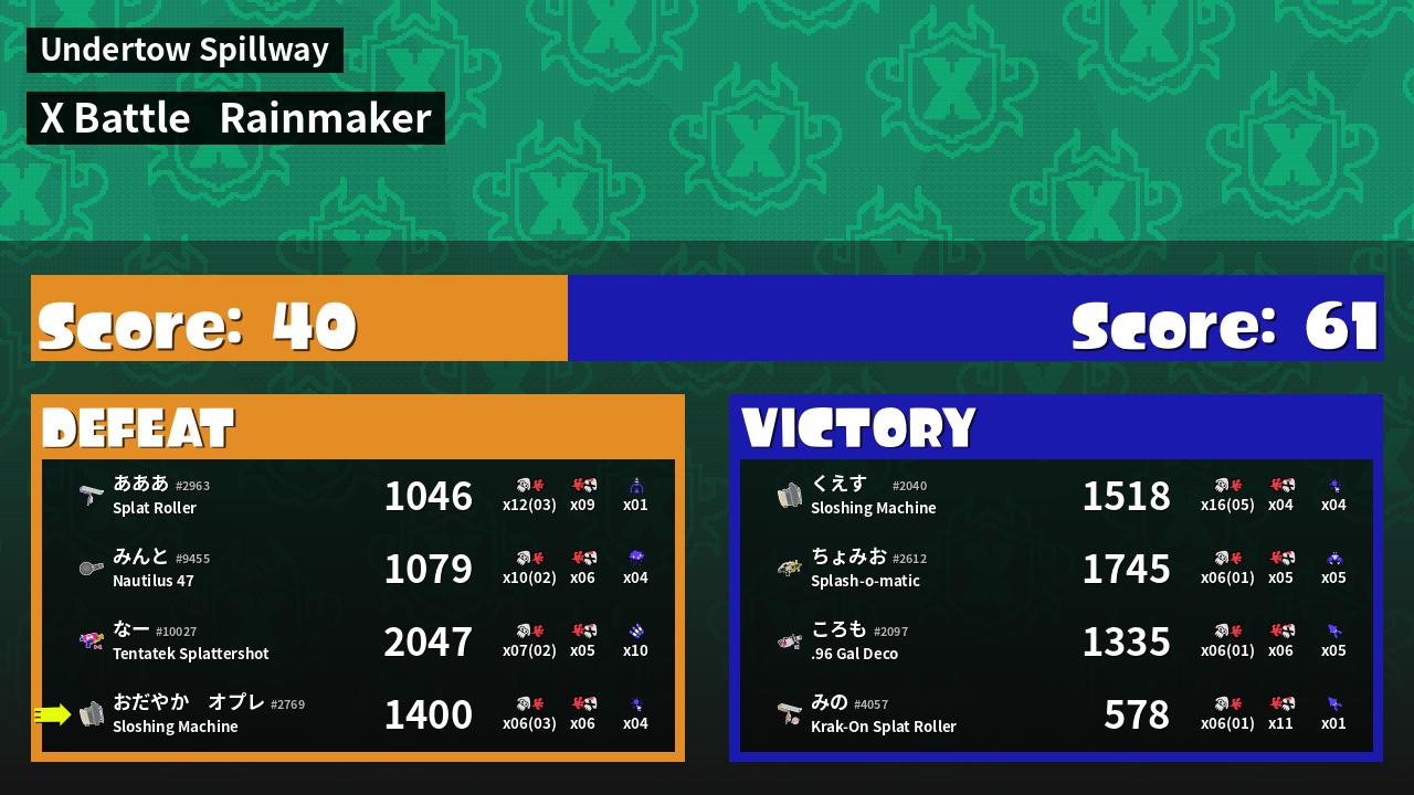 | Medals | #1 Splat Assister #2 Turf Inker #2 Super Jump Spot | ||