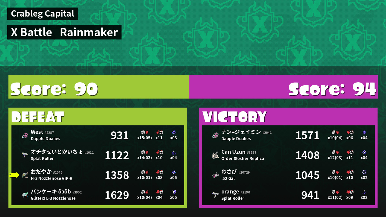 | Weapon | H-3 Nozzlenose VIP-R ( Suction Bomb / Triple Inkstrike) |
