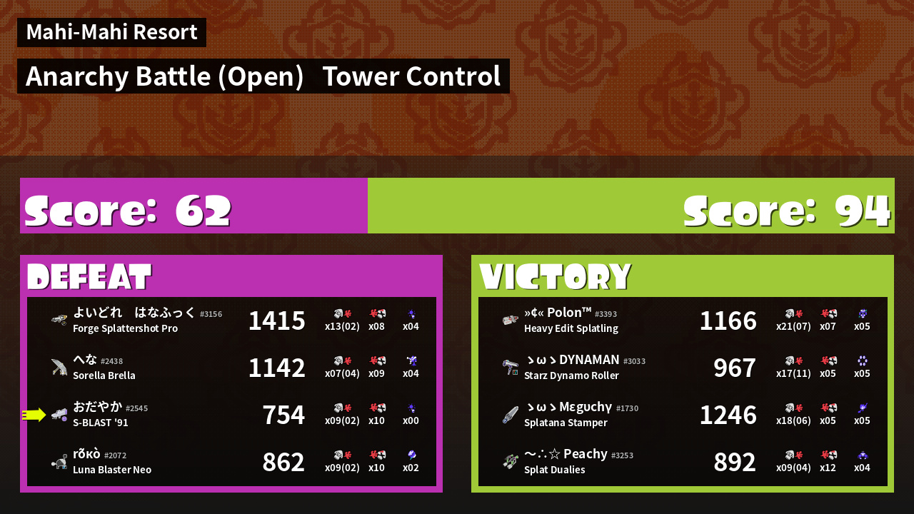 | Mode | Tower Control - Anarchy Battle (Open) |